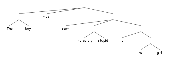 [S [NP [D the] [N boy] ] [T must ] [VP [V seem ][AP [Adv incredibly ] [Adj stupid ] ] [PP [P to ] [NP [D that ] [N girl ] ] ] ]]